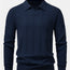 Long Sleeve Stripe V Neck Knit Polo Shirt