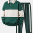 Relax Fit Color Block Polo Collar Sweatshirt & Slit Hem Stripe Pants