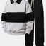 Relax Fit Color Block Polo Collar Sweatshirt & Straight Leg Pleated Pintuck Sweatpants