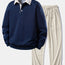 Relax Fit Contrast Corduroy Polo Collar Sweatshirt & Straight Leg Corduroy Pants