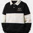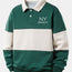 Relax Fit NY Brooklyn Print Color Block Polo Collar Sweatshirt