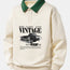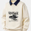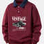 Relax Fit Vintage Car Print Contrast Polo Sweatshirt