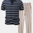 Stripe Waffle Johnny Collar Polo & Slim Fit Tapered Trousers