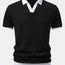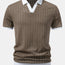 Striped Textured Johnny Collar Open Knit Polo