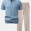 Waffle Johnny Collar Polo With Pocket & Slim Fit Tapered Trousers