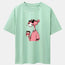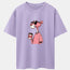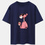 Pink Panther Drinking Coffee Print Drop Shoulder Oversize T-Shirt