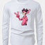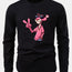 Pink Panther With V Sign Print Cotton Arc Hem T-Shirt