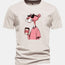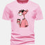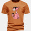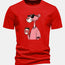 Regular Fit Pink Panther Drinking Coffee Print Cotton T-Shirt