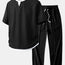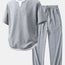 Relax Fit 2 In 1 Notched Collar Waffle T-Shirt & Waffle Pleated Pintuck Straight Leg Pants